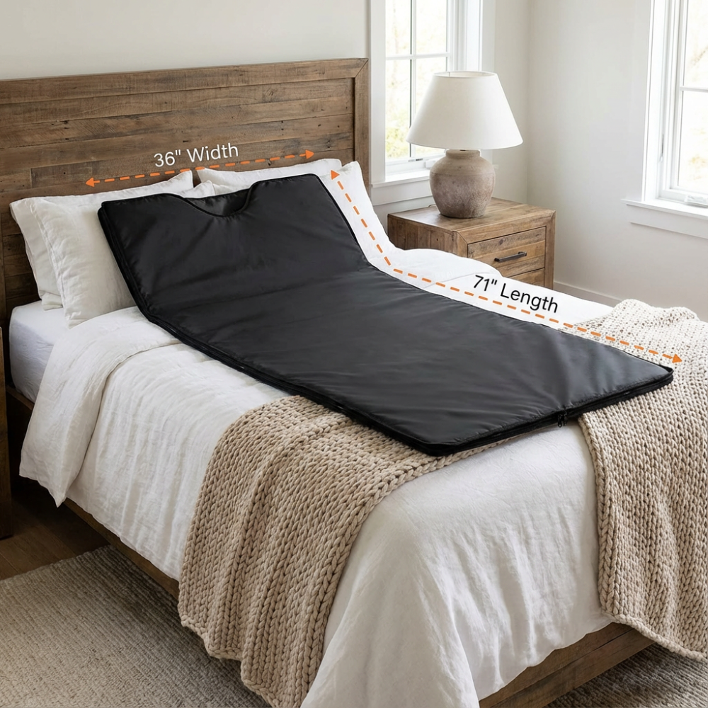Breng jouw zelfzorgroutine naar een hoger niveau met de RejuvaWrap™ Infrarood Sauna Deken — jouw persoonlijke systeem voor volledige lichaamsdetox, diepe ontspanning en optimaal herstel. De far-infraroodtechnologie (5–14 µm) verwarmt je lichaam van binnenuit, waardoor afvalstoffen worden afgevoerd, spierspanning vermindert en je lichaam sneller kan herstellen.